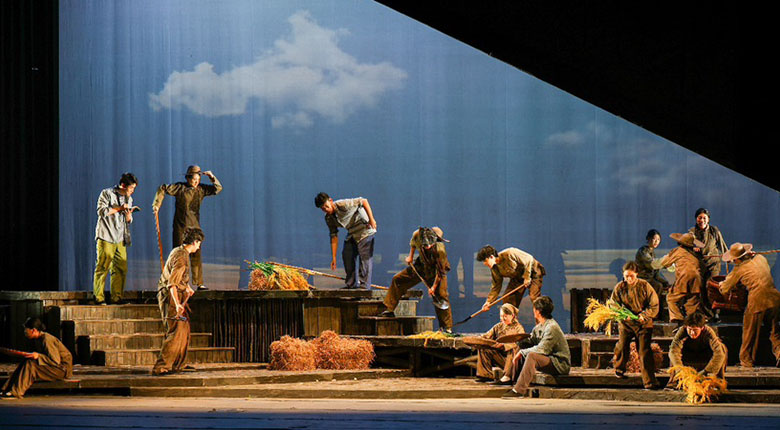 作为入选教育部、文化和旅游部、财政部主办的2025年高雅艺术进校园活动的江苏高校唯一一部艺术剧目,《满仓》讲述了三代“守粮人”奋斗与传承的故事。演出中,来自南京财经大学11个学院16个专业的20名学子同台献艺,将守粮人的坚韧与奉献展现得淋漓尽致。