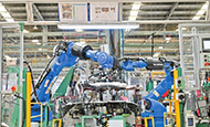 在东南汽车城一家汽配制造企业的车间内,机械臂正在作业。通讯员 李煜晗 摄
