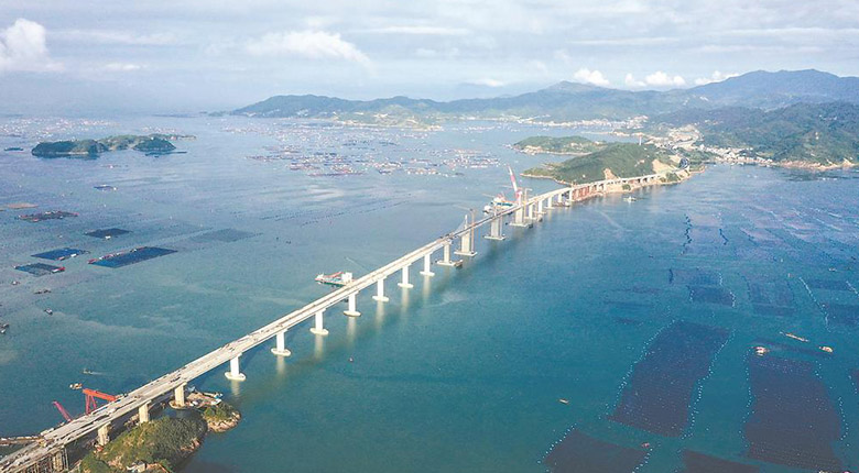 目前,宁上高速东吾洋特大桥已全面转入桥面系及桥梁附属结构施工阶段。