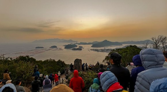 12月4日,摄影爱好者们在霞浦县三沙镇花竹村观赏拍摄海上日出。
