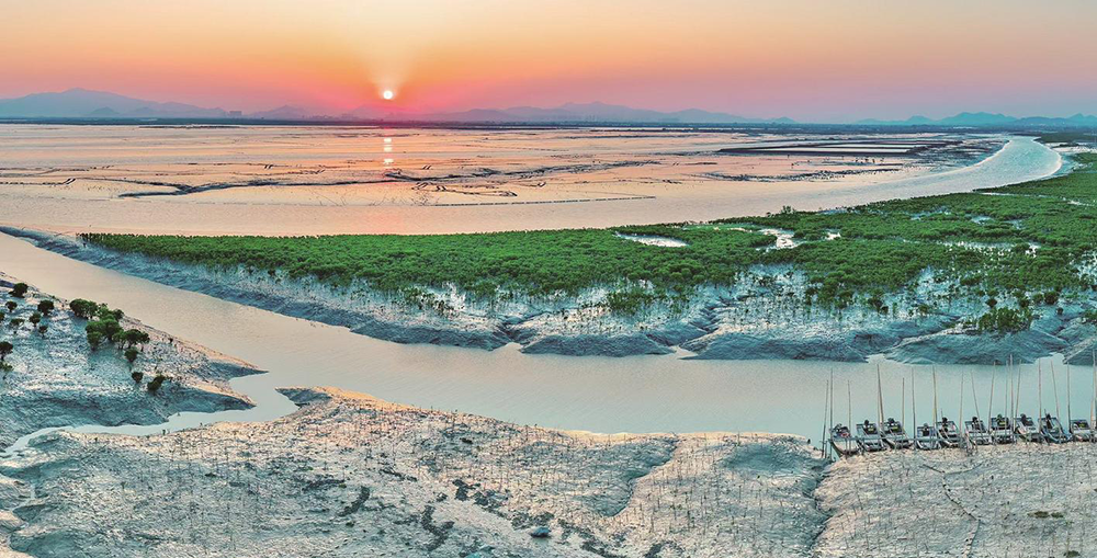 冬日傍晚,漳州台商区九龙江入海口滩涂在夕照中泛起粼粼金光,与连绵的红树林相映生辉,构成一幅和谐壮美的滨海生态图景。漳州融媒记者 梁健摄影报道