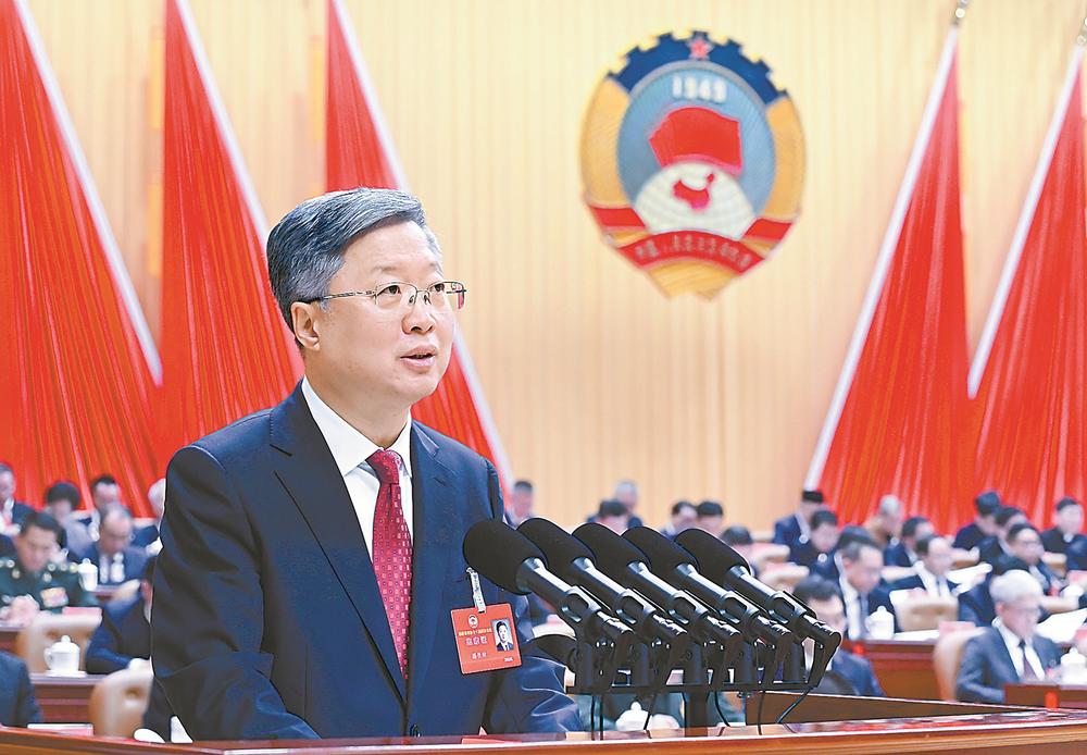 滕佳材代表十三届省政协常委会向大会作工作报告 黄海昆主持会议