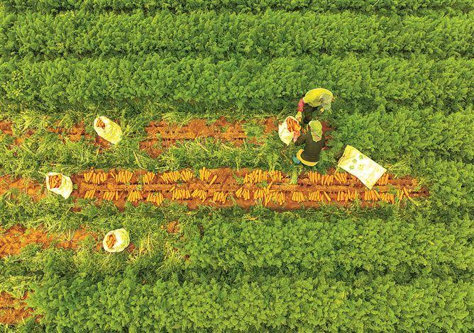 昨日,工人在翔安内厝镇东烧尾村采收胡萝卜。(本报记者 卢剑豪 摄)