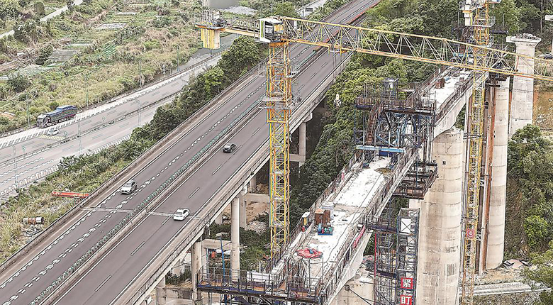 作为福州港口后方铁路全线最长、墩身最高、结构最复杂的桥梁,敖江特大桥全长约1591米,主墩高达60.1米,特殊结构占比达57%,先后上跨北二通道、敖江、S308省道、欢乐大道、贵安收费站互通等。