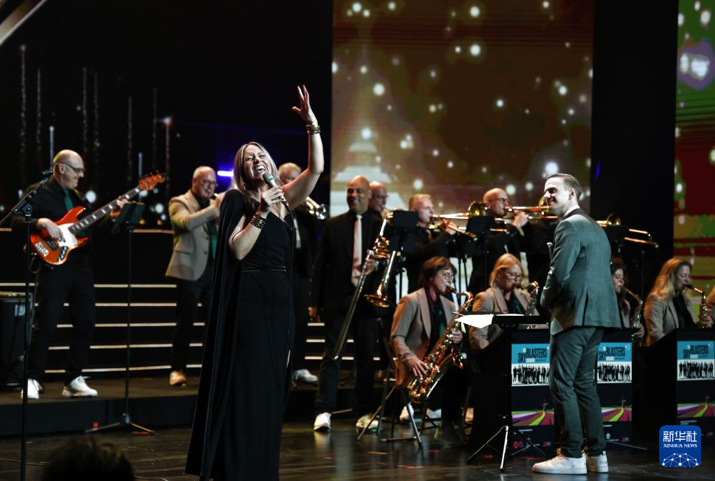 10月16日,荷兰天空冲击波乐团在表演器乐合唱《爱比山高》。
