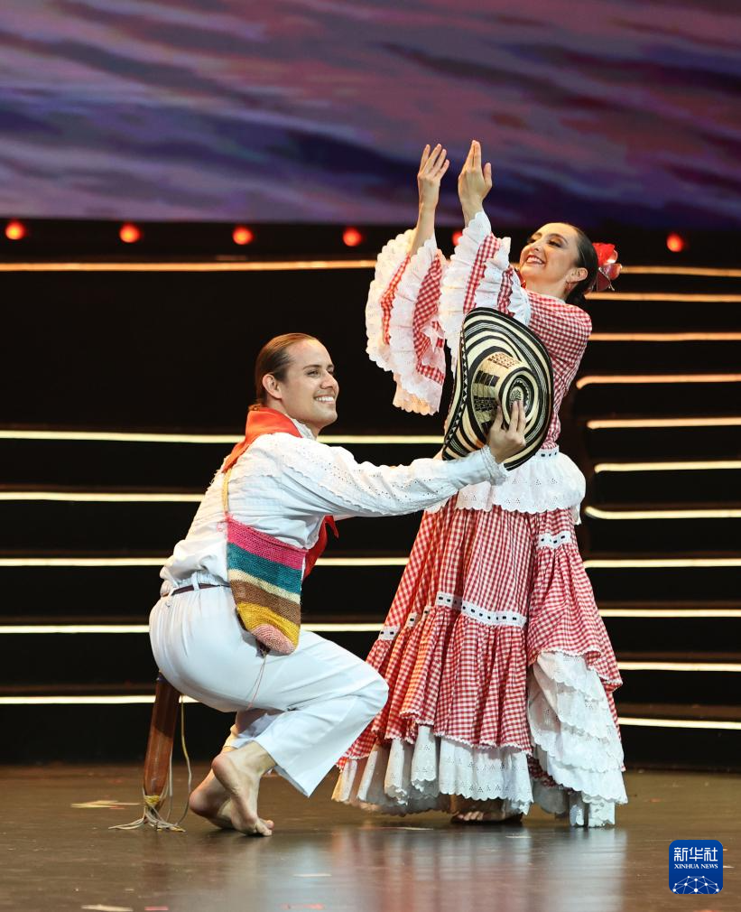 10月16日,哥伦比亚国家民间舞蹈团在表演舞蹈《昆比亚舞》。