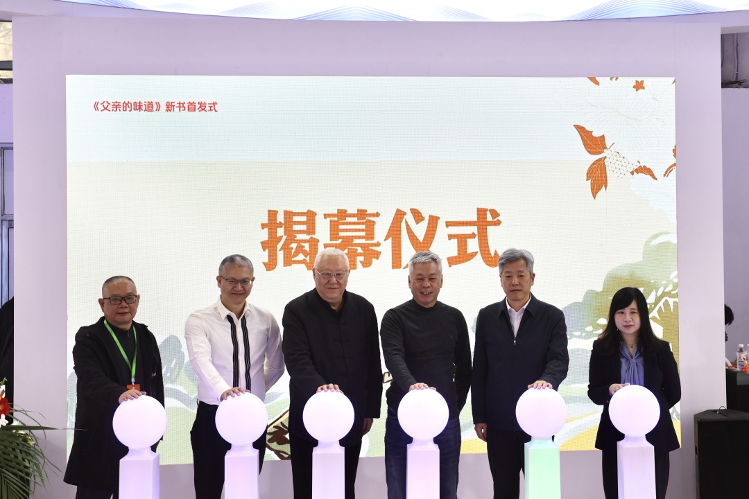 致辞结束后,活动进入高潮环节——《父亲的味道》新书揭幕仪式。中国作家协会原副主席、著名诗人与散文家高洪波,本书作者、国家一级作家张品成,《中华读书报》总编辑助理、中国儿童文学研究会副秘书长陈香,海峡出版发行集团党委委员、副总经理兼总编辑陈远,广东新世纪出版社社长陈志强,福建少年儿童出版社总编辑杨佃青,共同受邀上台,在现场观众的期待与掌声中,携手为新书揭幕。