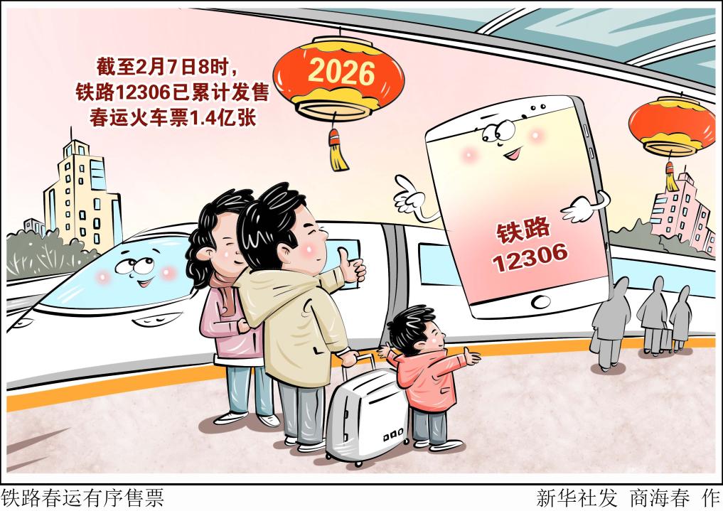 记者从中国国家铁路集团有限公司获悉,2月7日开始发售2月21日(正月初五)车票。截至2月7日8时,铁路12306已累计发售春运火车票1.4亿张。