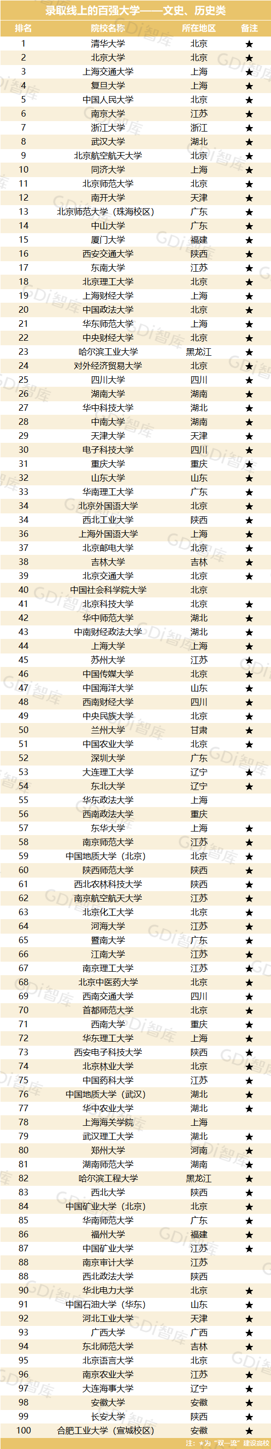 3月25日,广州日报数字化研究院(GDI智库)发布“录取线上的百强大学榜”(以下简称“百强榜”),榜单包括:“录取线上的百强大学—文史、历史类”和“录取线上的百强大学—理工、物理类”。