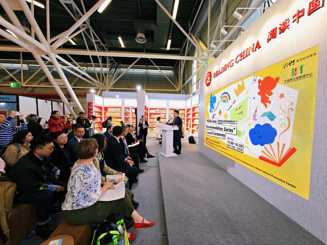 当地时间4月14日下午,“国际安徒生奖评委会推荐丛书”启动仪式在 2026 年博洛尼亚国际儿童书展中国展位隆重开幕。