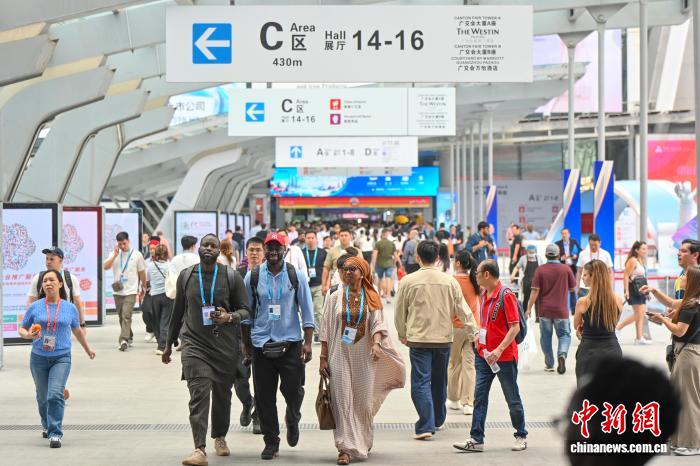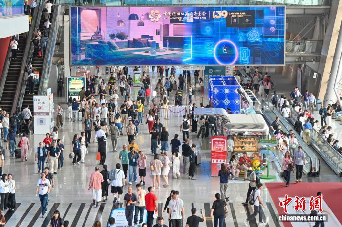 图为广交会展馆内客流如织。中新社记者 陈骥旻 摄
