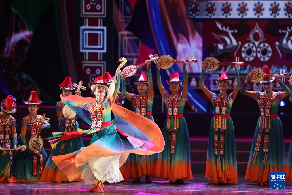 甘肃省张掖市裕固美舞蹈团的演员在甘肃省群众文艺展演展播活动首场演出中表演舞蹈(1月7日摄)。