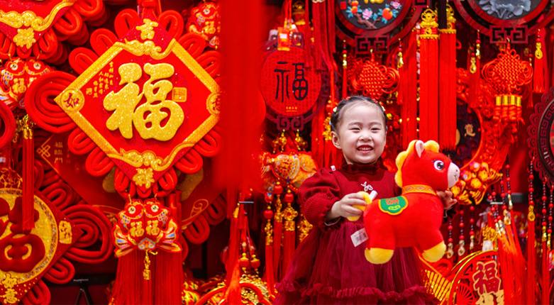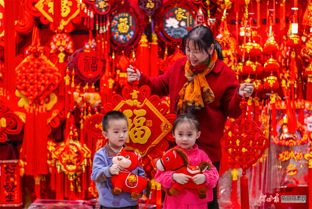 1月29日,张掖市甘州区各大商超、市场内年味浓厚,马年玩偶、红灯笼、中国结等新春饰品琳琅满目,市民纷纷选购,节前饰品销售迎来热潮,节日喜庆氛围愈发浓郁。