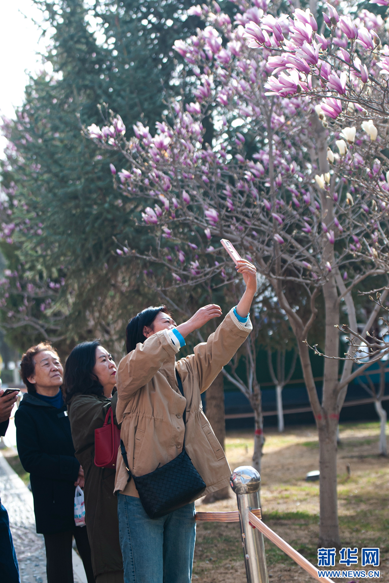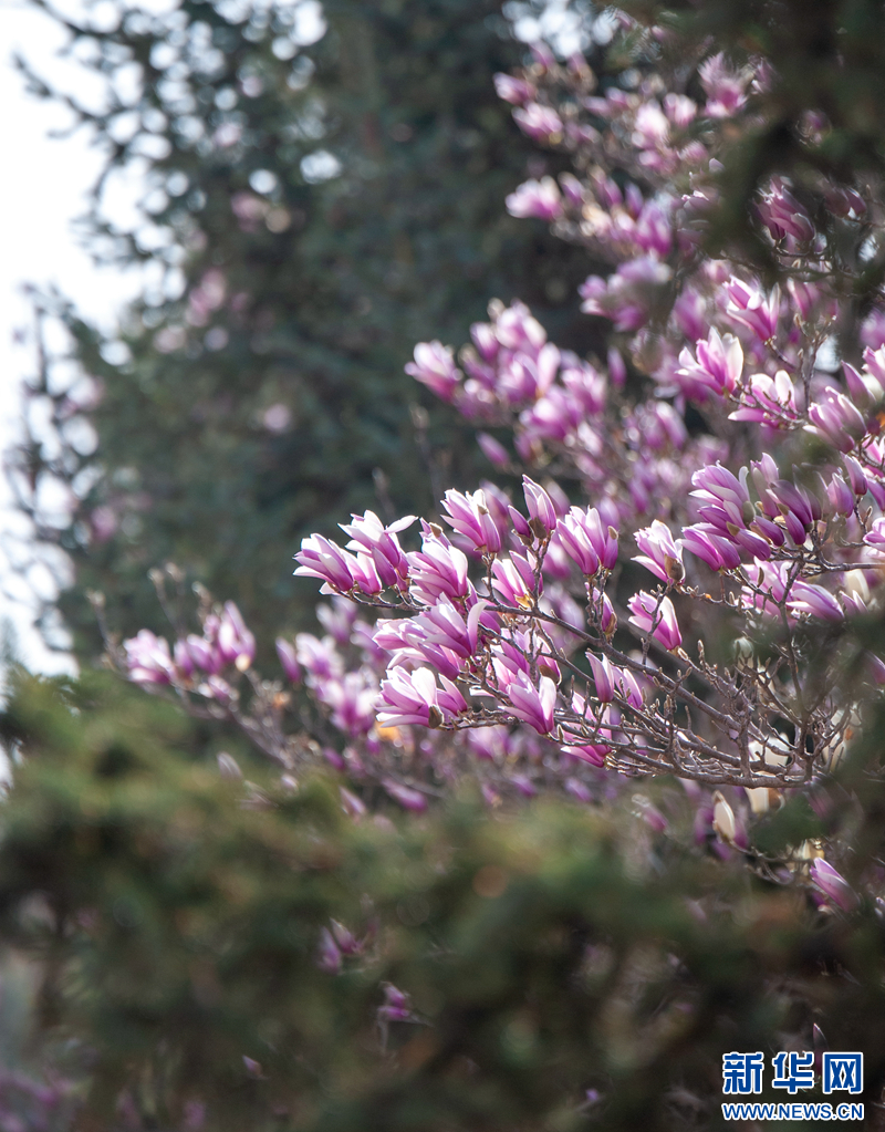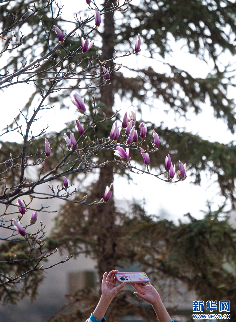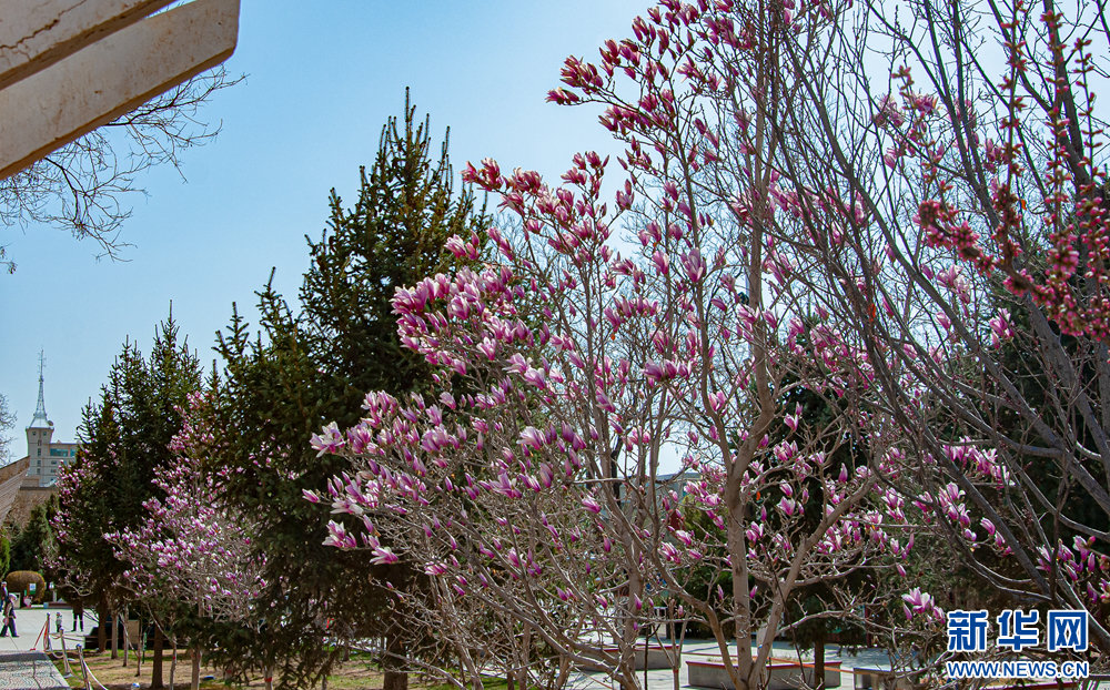 近日,甘肃省张掖市中心广场的玉兰花迎来盛花期。粉白相间的花朵缀满枝头,清雅花香在春光里弥漫,引得市民游客纷纷驻足观赏、拍照留念。新华网发(刘旭明摄)