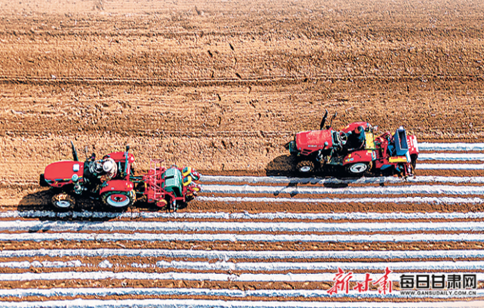 春耕时节,庆城县驿马镇安家寺村村民抢抓农时开展农地覆膜作业。新甘肃·甘肃日报通讯员 张应君