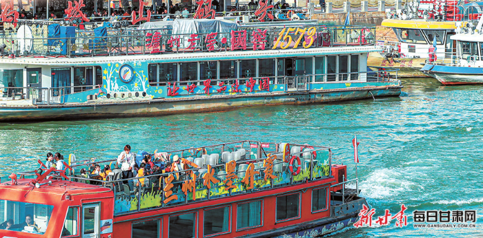3月7日,游客乘船游览兰州黄河风情线大景区。新甘肃·甘肃日报通讯员 陈坤