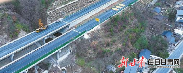 3月21日,S44康县至略阳高速公路望关至白河沟段二期工程,顺利完成沥青上面层摊铺施工。新甘肃·甘肃日报通讯员 陈勇