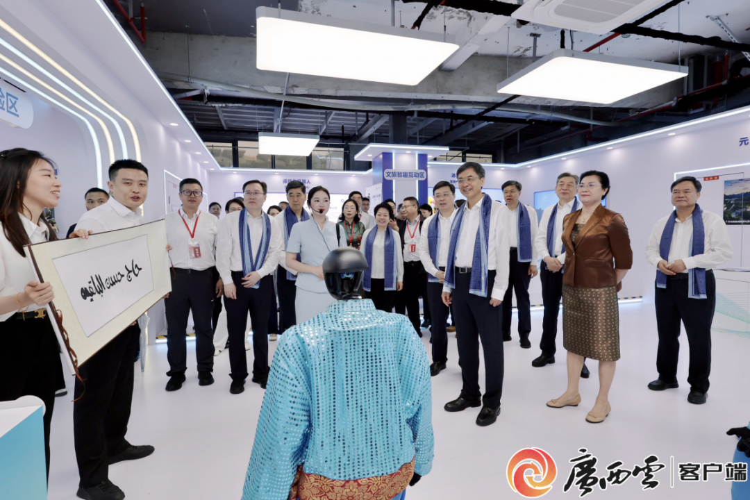 余韵未散,科技浪潮已扑面而来。陈刚、韦韬、孙大伟等步入第四单元“智启未来 AI岛”,了解广西旅游发展集团、柳州人工智能工业国潮馆、自治区生态环境厅、广西出版传媒集团等单位带来的AI应用场景,近距离感受人工智能赋能千行百业的生动实践。