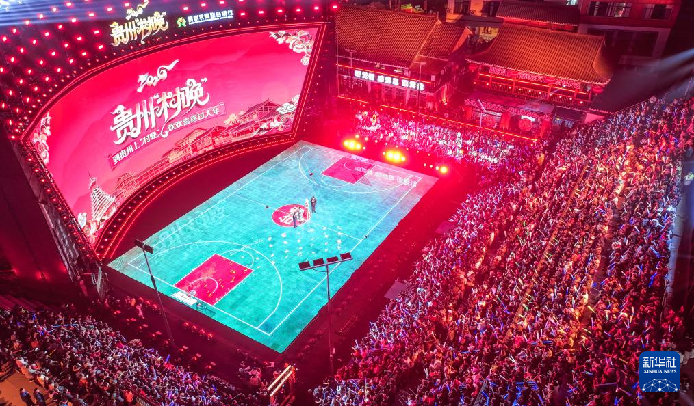 2月3日晚,2026贵州“村晚”主会场活动在黔东南苗族侗族自治州台江县“村BA”球场录制拍摄。“村晚”现场给观众带来“村BA”“村超”“村T”“村歌”等贵州“村字号”节目,演出以村民为主,展示贵州多姿多彩的民族文化和地方“村字号”IP特色。