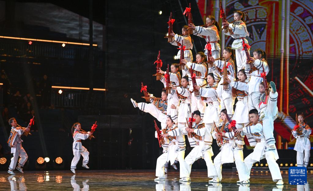 2月3日,孩子们在2026贵州“村晚”现场展示芦笙舞《滚山珠》。
