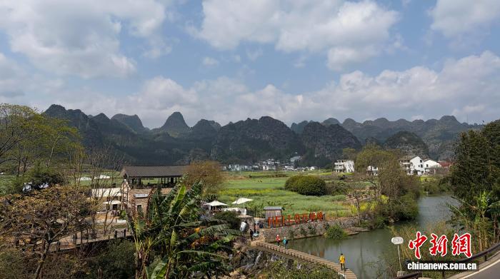 图为游客在贵州省兴义市万峰林街道的上纳灰村游玩。记者 周燕玲摄