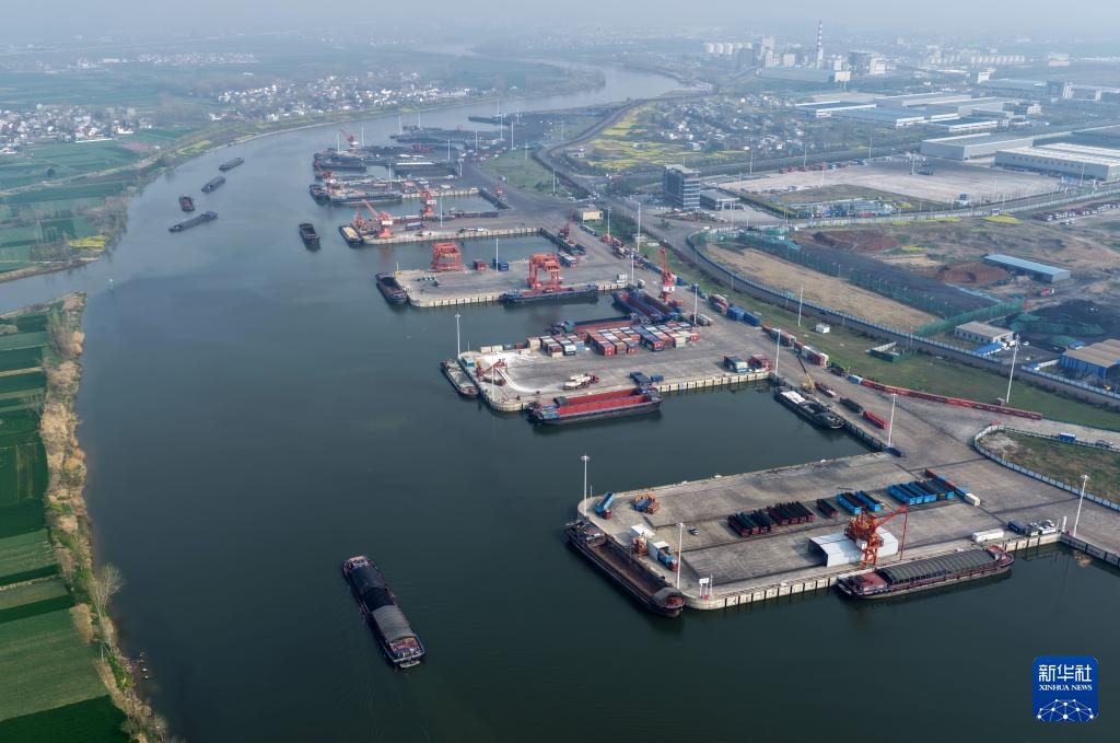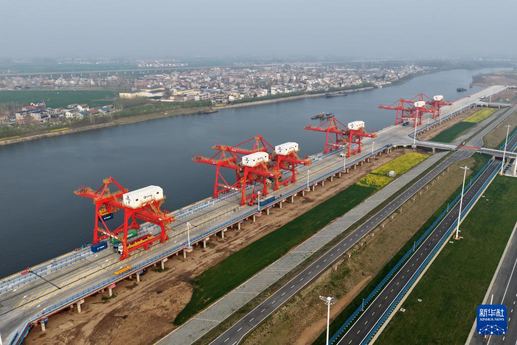 这是3月31日拍摄的周口港中心港区范营作业区(无人机照片)。