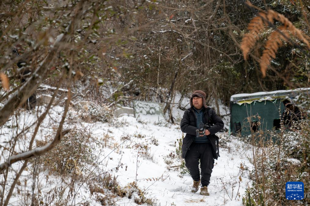 1月20日,在神农架林区红坪镇温水村,一名观鸟爱好者拍摄完成后离开拍摄点。