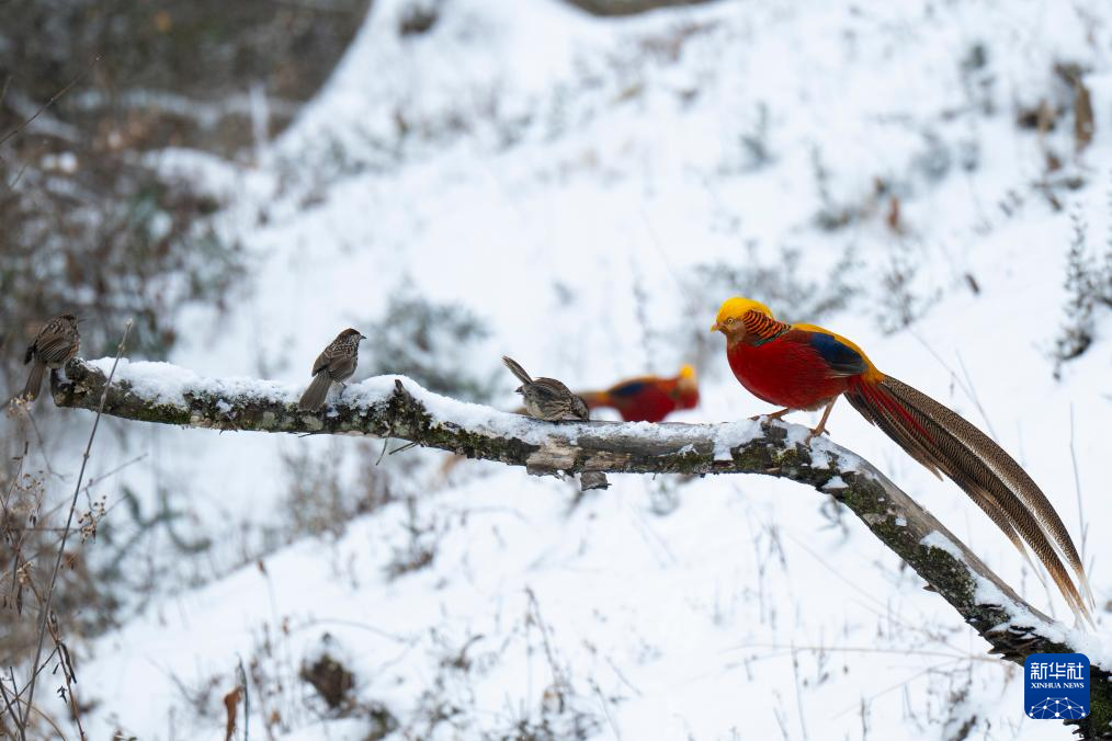 这是1月20日在神农架林区红坪镇温水村拍摄的红腹锦鸡(右)。