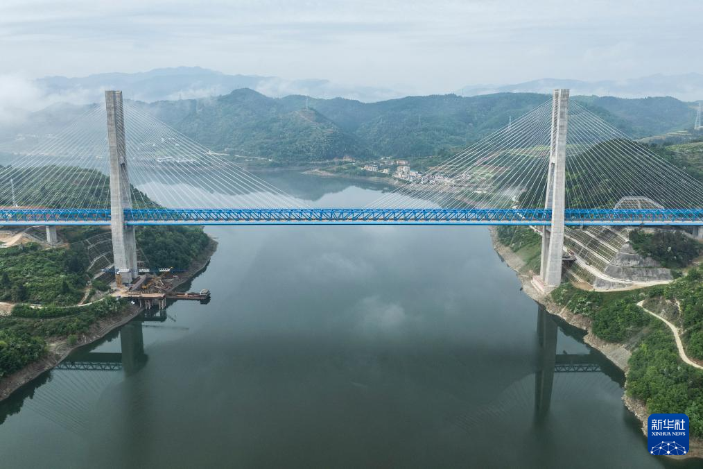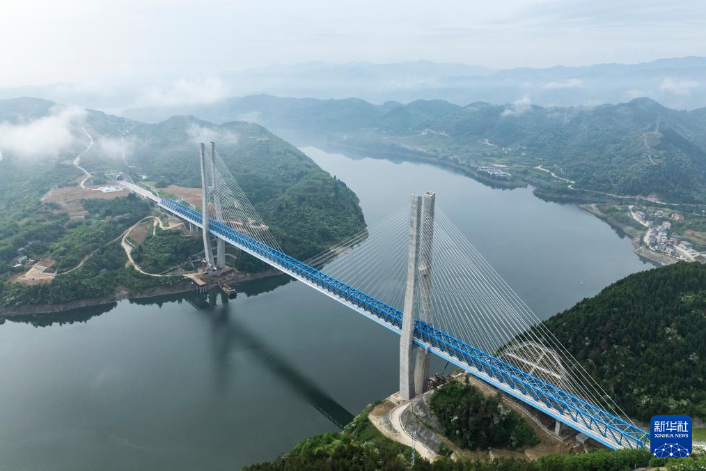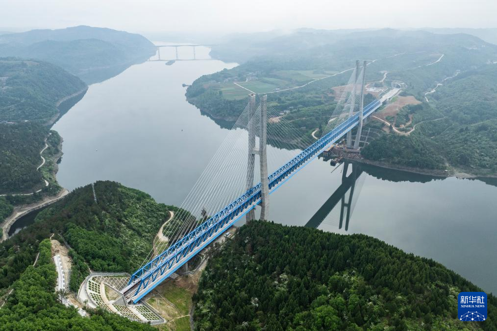 4月15日,55405次复兴号CR400AF重联动车驶过由中铁十一局集团有限公司承建的西十高铁汉江特大桥。汉江特大桥位于湖北省十堰市,跨越丹江口水库库区,是西十高铁全线控制性工程(无人机照片)。