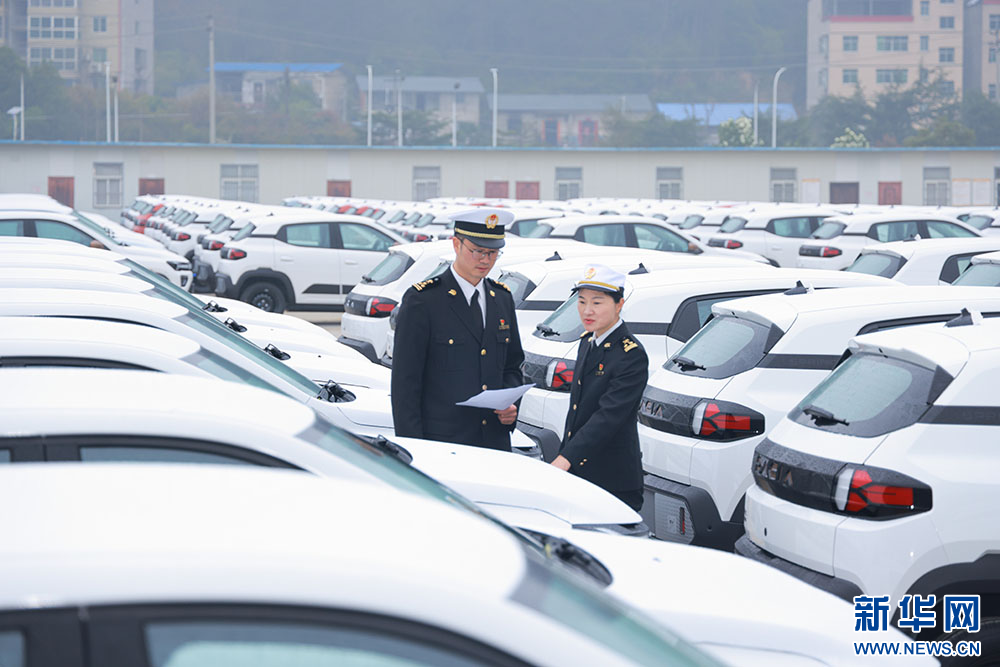 3月23日,十堰海关工作人员查验出口新能源车。新华网发(武汉海关供图)