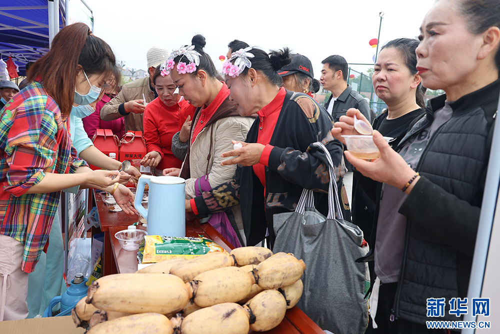赛事现场同步设置农产展销区、体彩公益区、文旅展示区,吸引群众参观。湖北省藕乡村生态农业开发有限公司展位前,摆满莲藕产品,一波接一波的村民来到展位前咨询价格、品尝藕粉。公司几名工作人员不停忙碌,取碗、倒入藕粉、冲热水、快速搅拌……很快,一碗碗顺滑有弹性的藕粉递到了村民手中。“味道不错,好吃!”村民接连称赞。