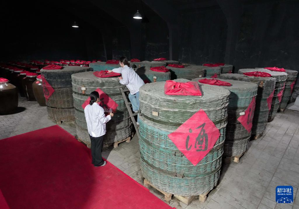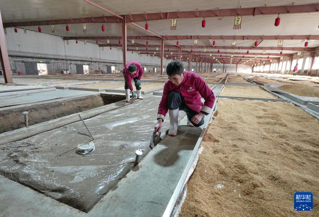 1月28日,工人在河北省平泉市承德避暑山庄企业集团股份有限公司的“涌泰泉古窖池”车间工作。