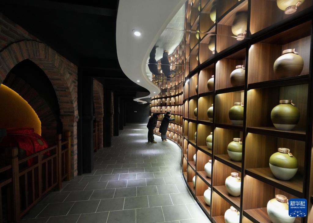 1月28日,游客在河北省平泉市承德避暑山庄企业集团股份有限公司的酒窖参观。
