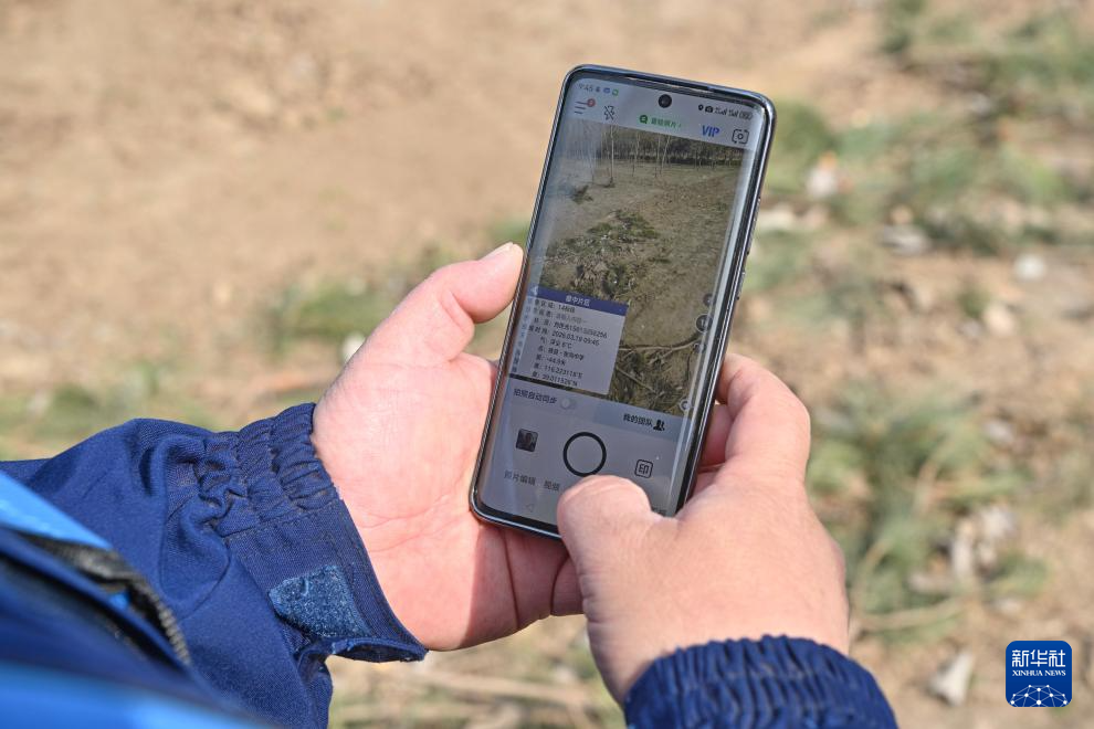 3月19日,刘世光展示手机里的护林巡查记录。