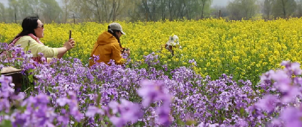 据狼牙山田园花海负责人李红雨介绍,目前景区已全面进入赏花季,早樱、二月兰、油菜花正值盛花期,后续碧桃、海棠等花卉品种将接续绽放,整个赏花期将持续至五月上旬,预计四月中旬迎来客流最高峰。