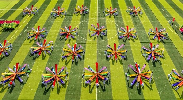 在激昂奋进的音乐声中,来自全省普通高校112支代表队集体入场,展现出当代大学生的蓬勃朝气和昂扬斗志。开幕式后,来自定州实验中学、第六中学、第五中学、西关南街小学以及冀中职业学院的2000余名参演人员为现场观众呈现一场兼具观赏性与感染力的视觉盛宴。