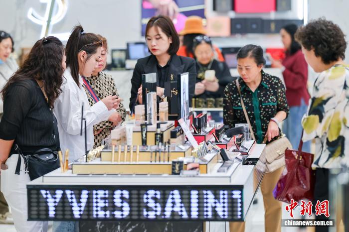 1月18日,顾客在cdf海口国际免税城选购化妆品。海南自贸港封关首月,离岛免税市场火爆。中新网记者 骆云飞 摄