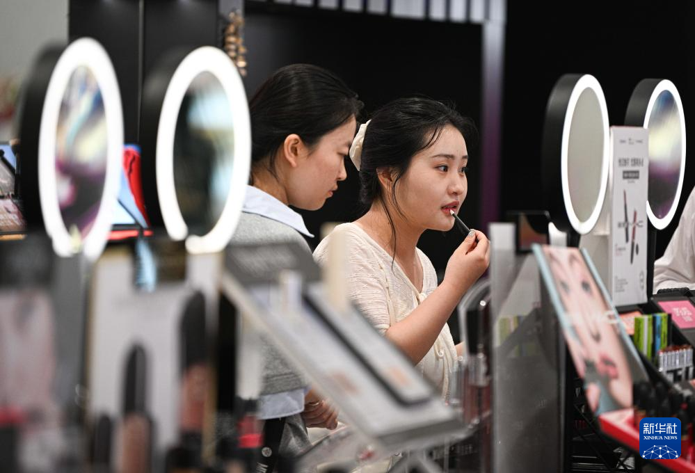 4月25日,顾客在中免集团海口日月广场免税店购物。
