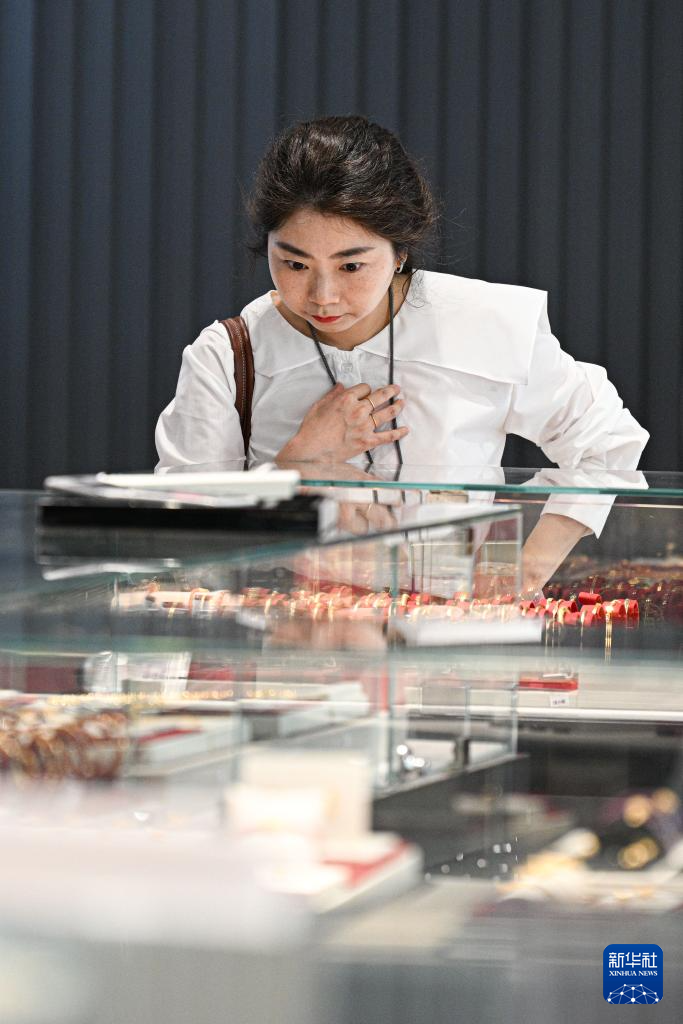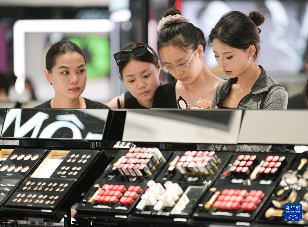 4月25日,顾客在中免集团海口日月广场免税店选购离岛免税品。