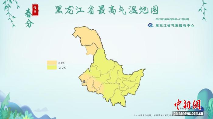 2026年“春分首日”黑龙江省最高气温地图(2026年3月20日8时至21日8时)。黑龙江省气象局供图