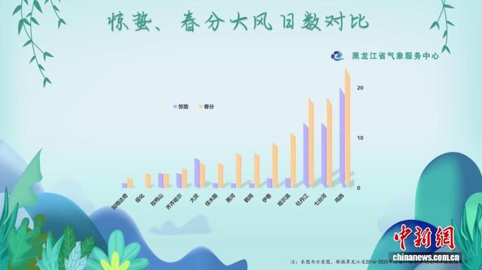 2016年至2025年惊蛰、春分节气大风日数对比示意图。黑龙江省气象局供图