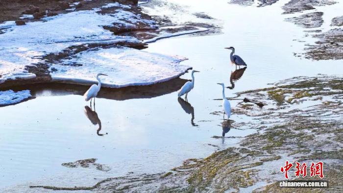 春日的湿地生机盎然,回归的候鸟成群结队,在浅滩上悠闲觅食,在水面上追逐嬉戏。它们时而展翅低飞、划过水面,时而梳理羽毛、在水中漫步。远山覆着残冰,粼粼春水漾着波纹,飞鸟翩跹其间,构成了一幅幅和谐秀美的生态美景画卷。