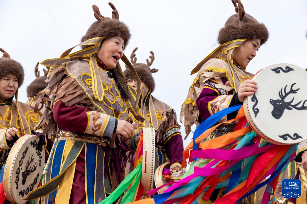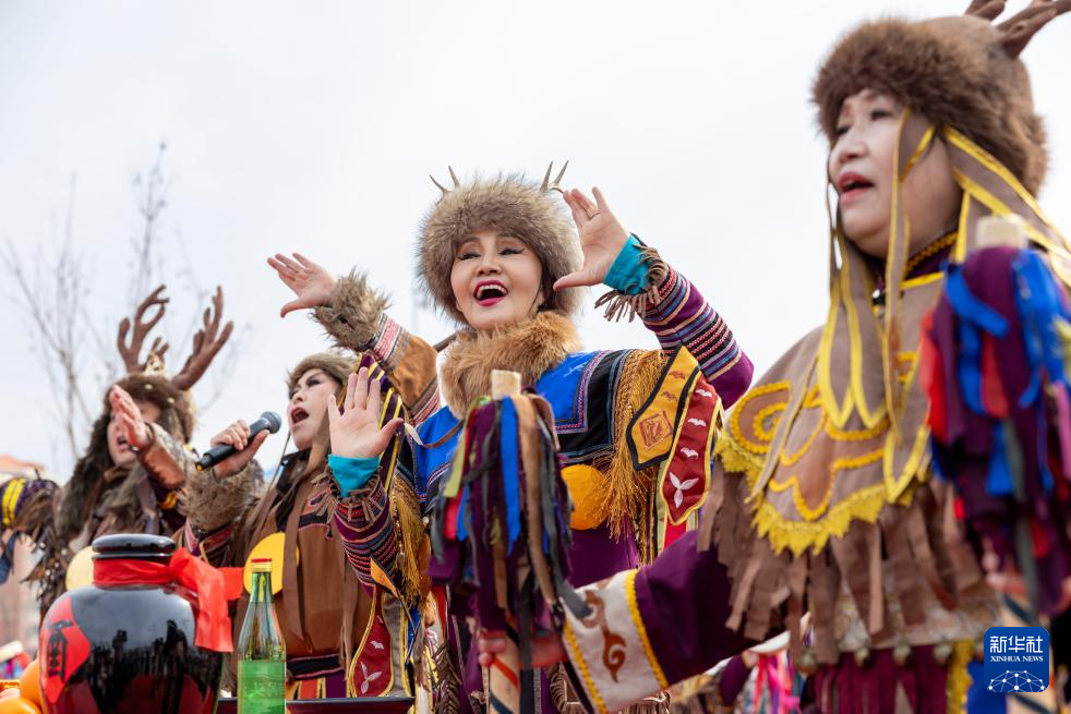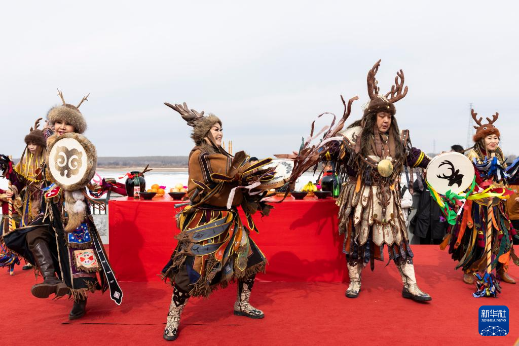 这是4月10日在2026“趣”佳木斯·喊江节现场拍摄的赫哲族开江祈福仪式。