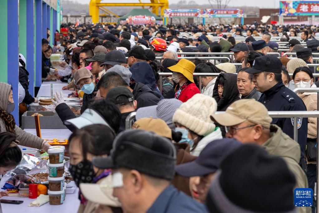 4月10日,人们在2026“趣”佳木斯·喊江节现场排队品尝美食。