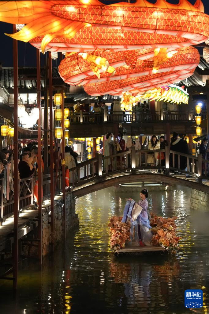 1月9日,游客在南岳里观看水上舞蹈演出。
