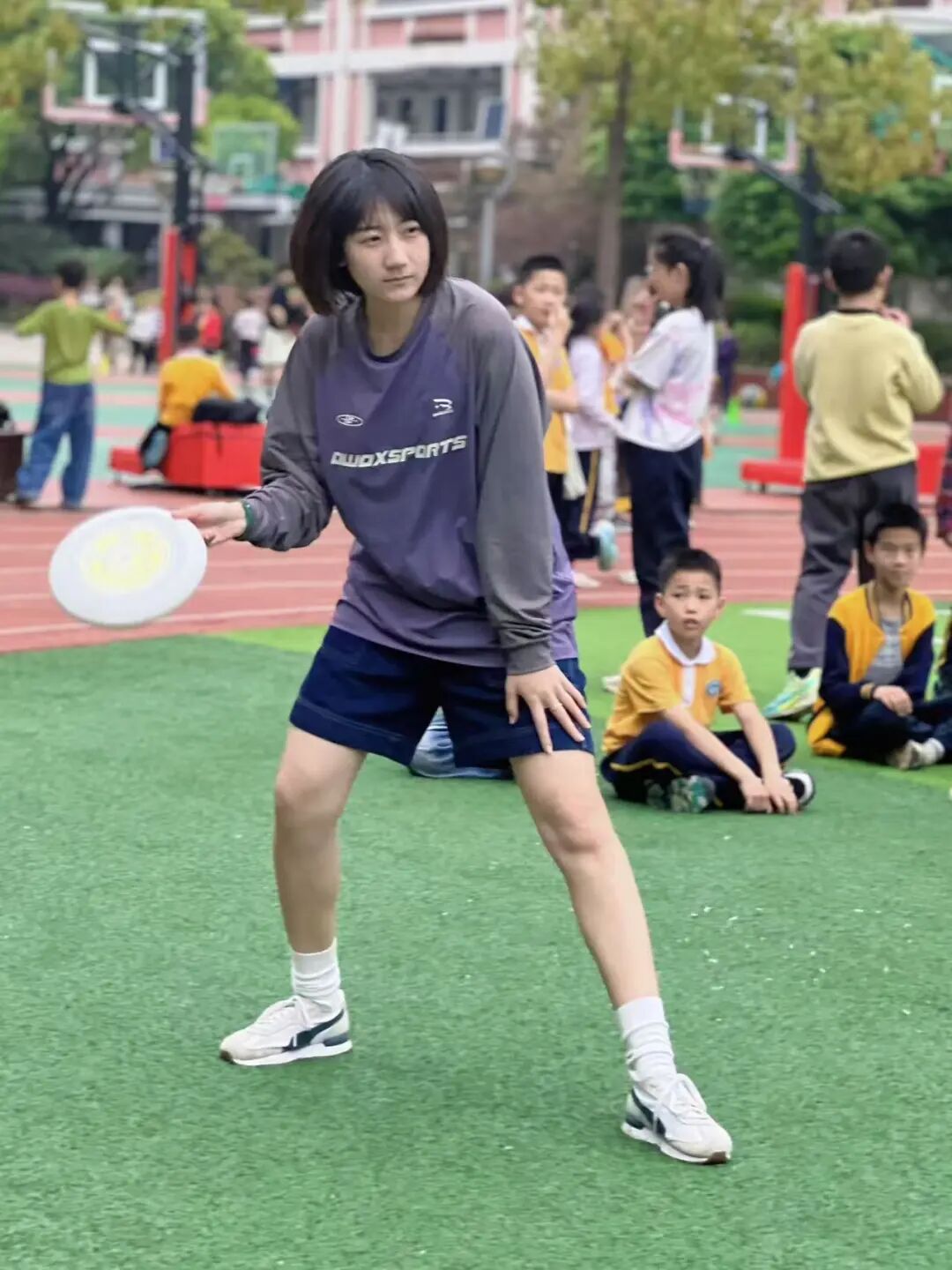“那时我们班的孩子被选中参加市里的飞盘比赛,我陪着他们训练、拍照。有一天体育老师问我愿不愿意当助教,陪孩子们打盘,我一口就答应了下来。”