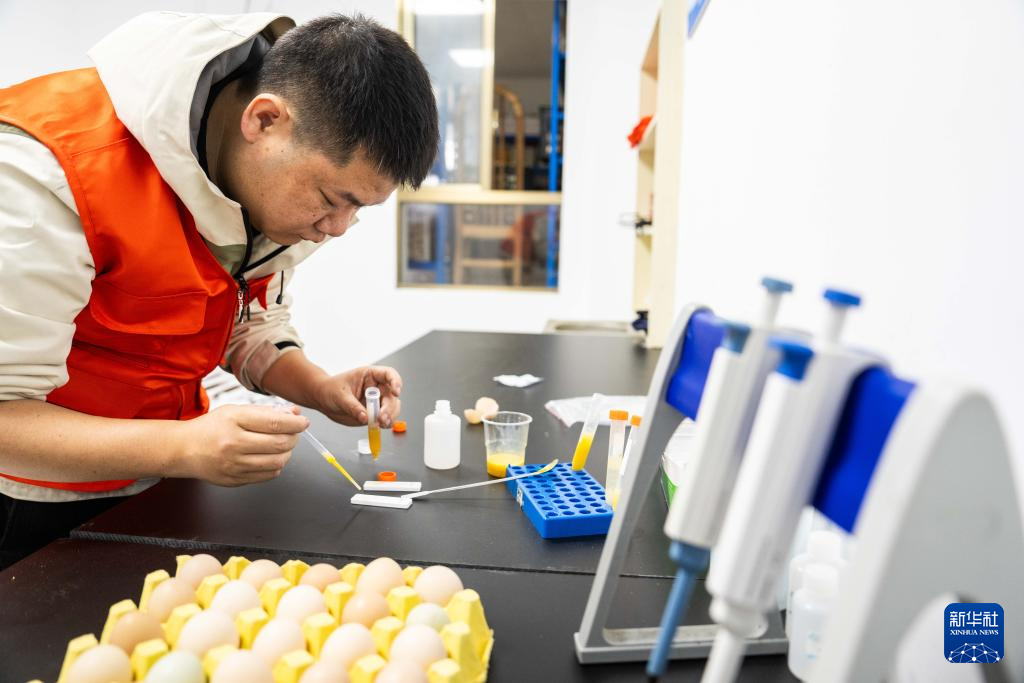 4月15日,在位于古岳峰镇的株洲千家蛋种养殖专业合作社,工作人员对鸡蛋品质进行抽检。