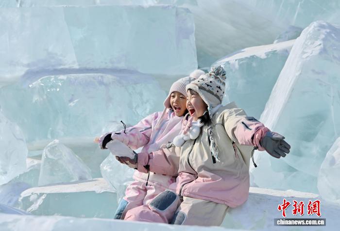 长春打造“蓝冰”景观 市民打卡体验“冰川世界”