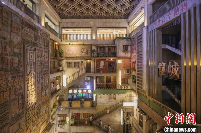 5月2日,江苏盐城,市民和游客在竹林大饭店内参观。作为盐城民俗博物馆,竹林大饭店把城市故事在场景中还原,将老城门石砖、老盐城照片、燕舞收录机等一一展陈,营造氤氲缭绕的烟火气,复刻老盐城的“旧日时光”。中新社记者泱波 摄