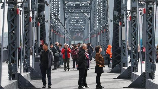 辽宁丹东鸭绿江断桥吸引游客打卡拍照